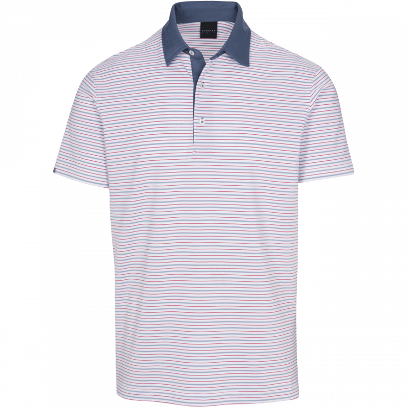 Engineered ventilation and COOLMAX® permanent moisture management showcase the Dunning Difference in the Elswick stripe performance polo. A contrast collar and placket will have you looking as cool as you feel.