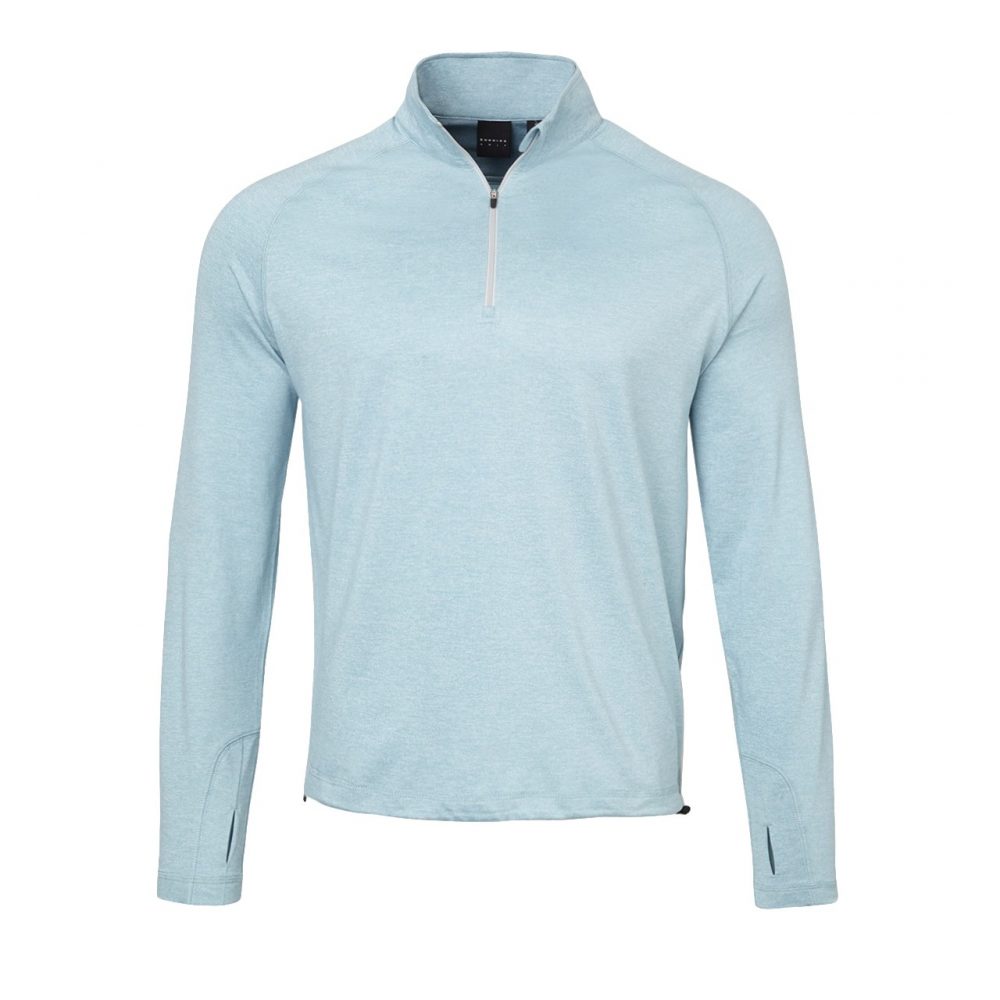 Our Heathered Tour 1/4 Zip is constructed from our versatile performance fabric. The nature of this composition creates excellent comfort, breathability, and mobility for wear during all playing conditions. This perfect layering option features just the right amount of stretch, and styled with an authentic heathered look. Finished off with super functional hand warmer thumb holes, an adjustable drawcord waist, embroidered Dunning logo on back neck, and debossed D logo on zipper closure.