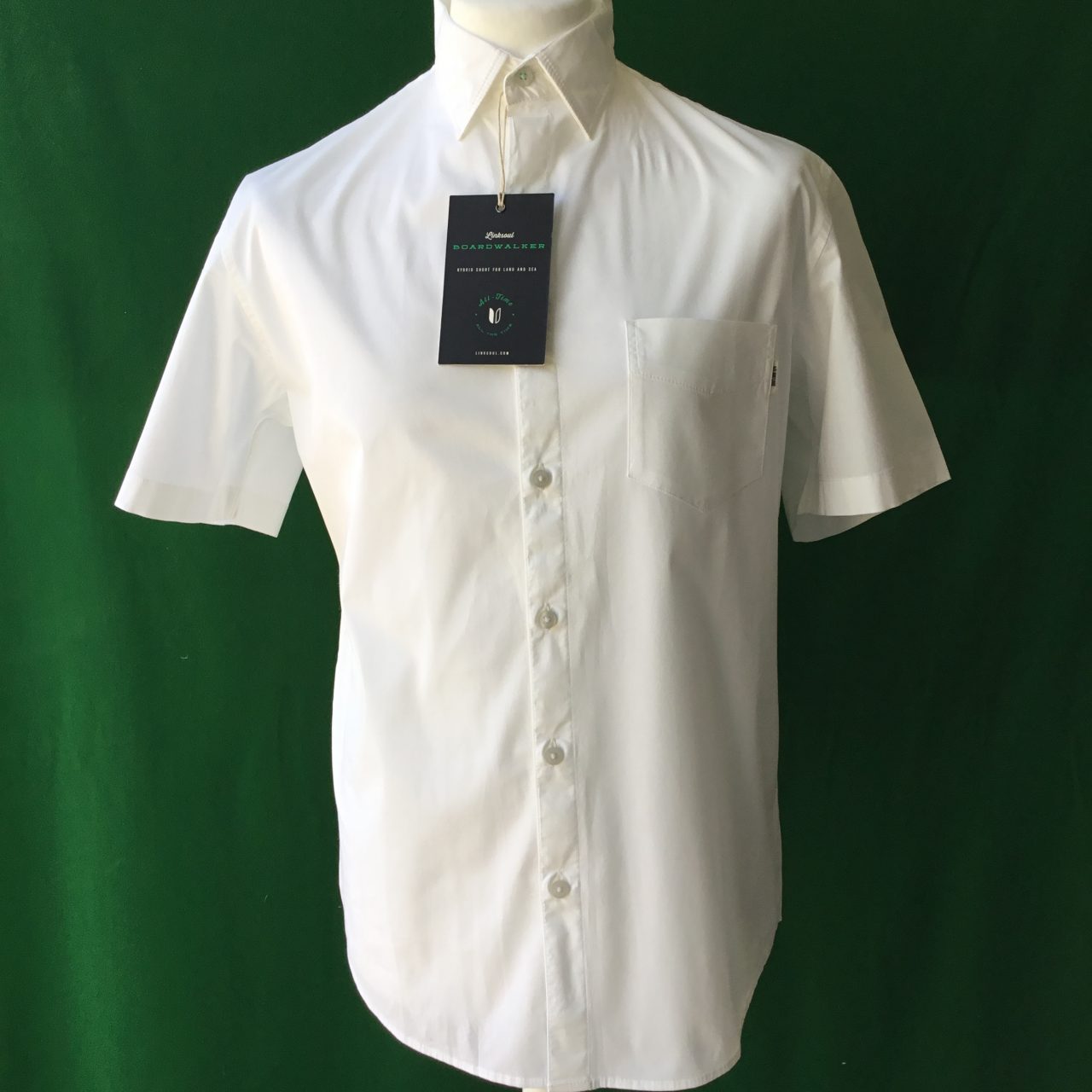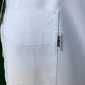 Stylish 4 Way stretch fabric shirt with concealed button down collar and short sleeves.