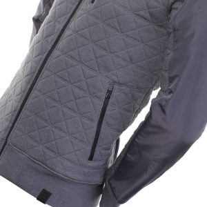 Mens Victorinox Steppen Hooded Full Zip Jacket. A full zip, quilted CVC cotton/polyester fleece hooded jacket with jersey lining, featuring Tafetta overlaid at hood, upper body and sleeves. Finished with reverse coil zippers at chest, waist pockets & centre front with neoprene cross & shield logo at bottom hem. 60% Cotton, 40% Polyester.