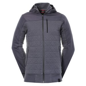 Mens Victorinox Steppen Hooded Full Zip Jacket. A full zip, quilted CVC cotton/polyester fleece hooded jacket with jersey lining, featuring Tafetta overlaid at hood, upper body and sleeves. Finished with reverse coil zippers at chest, waist pockets & centre front with neoprene cross & shield logo at bottom hem. 60% Cotton, 40% Polyester.